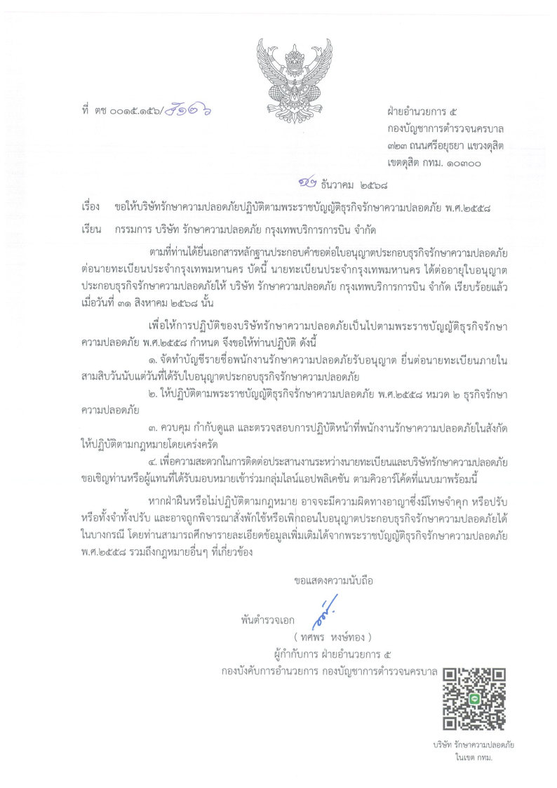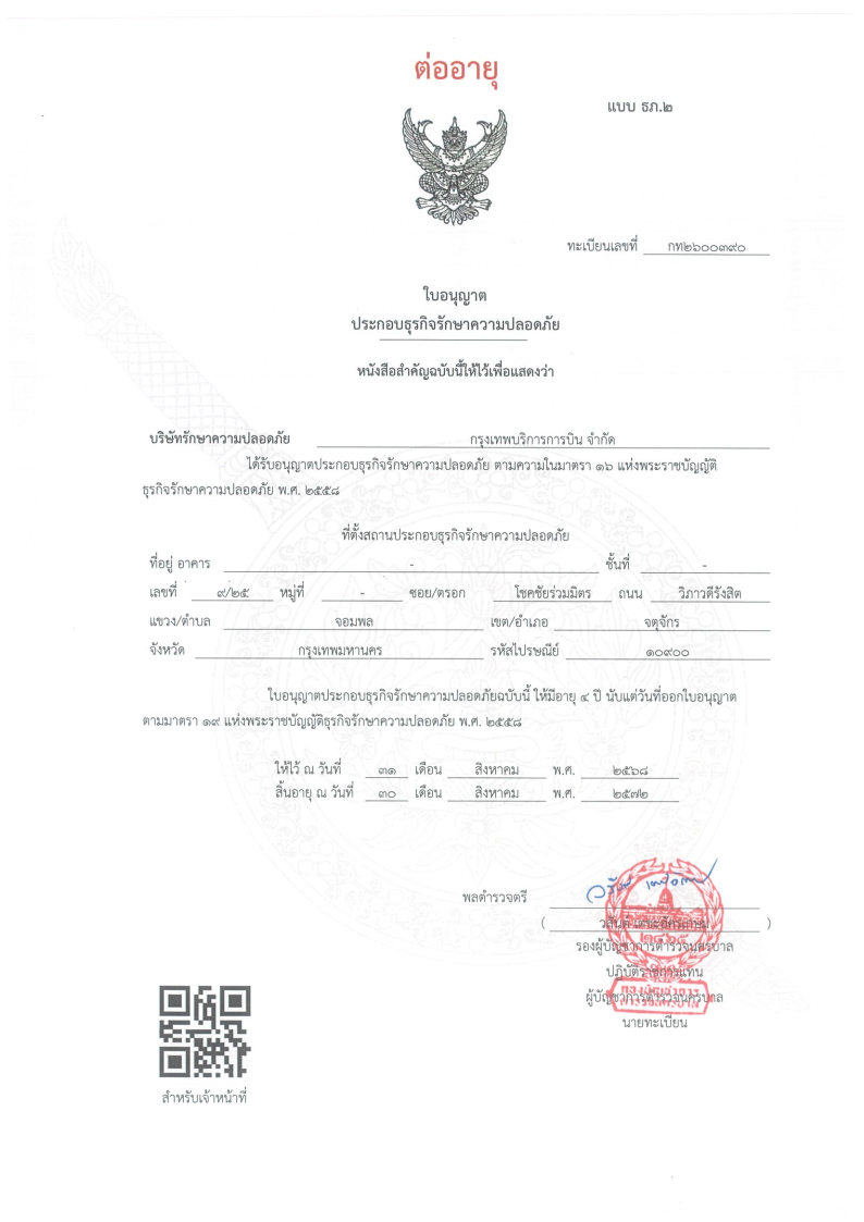 ใบอนุญาติประกอบธุรกิจรักษาความปลอดภัยปี 2568-2572